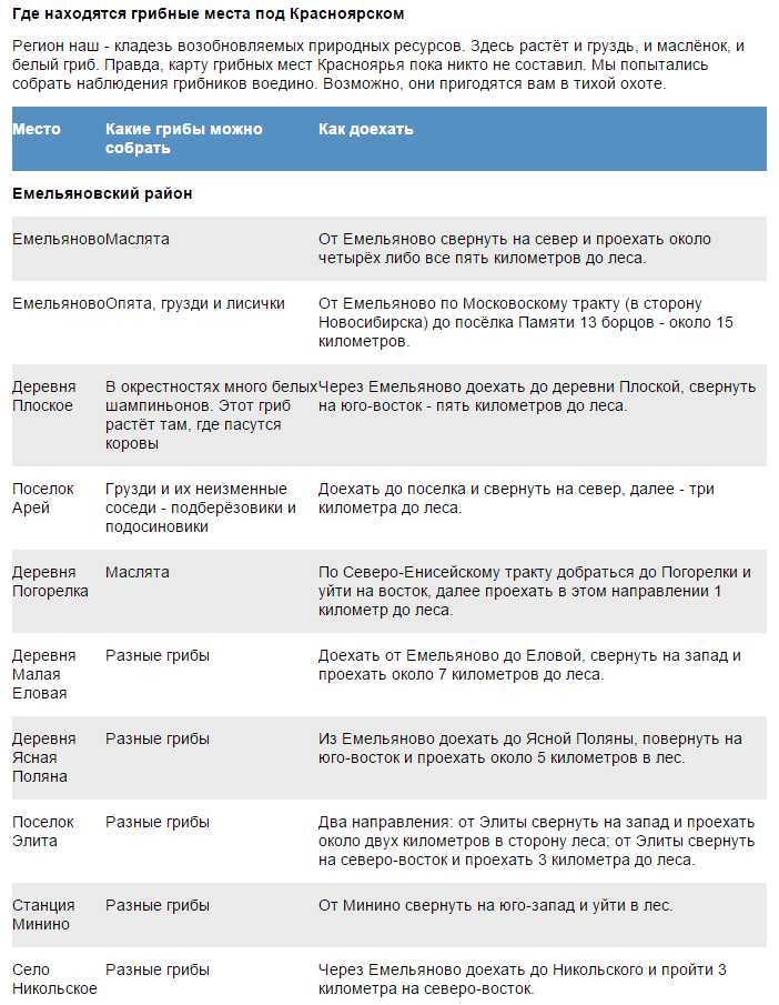 Грибные места Красноярска 25/08/2015 11:58 Не знаю на сколько точная и верная информация...корректировать может любой желающий!источник Главная / Статьи -1 berroma 10 4 478