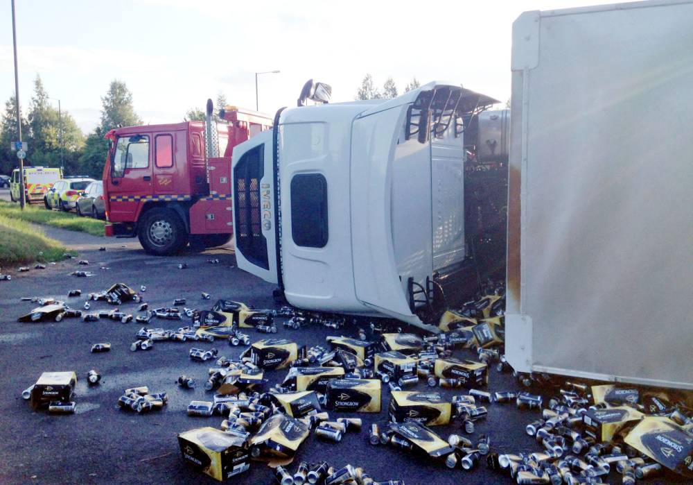 Совершеннейшая дикость творится а Европе. В британском городе Вустер в результате ДТП перевернулся грузовик с сидром. К счастью для всех всех сидр Strongbow (выпускается британским подразделением компании Heineken, имеет 5% алкоголя) был не в бутылках, а в банках, поэтому высыпавшись на дорогу почти не пострадал. Несколько банок открылись, много помялось, но в целом вполне еще пригодный для употребления алкоголь.