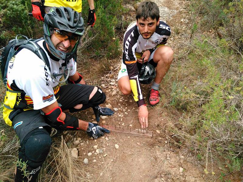 Рядом с испанским городом Альканьис на популярной трассе для гонок на горном велосипеде спортсмены нашли очень интересный девайс. Прямо на дорожке лежало устройство, которое превратило колеса первых нескольких велосипедов в повод для большой печали. При ближайшем рассмотрении ловушки велосипедисты пережили небольшой шок.