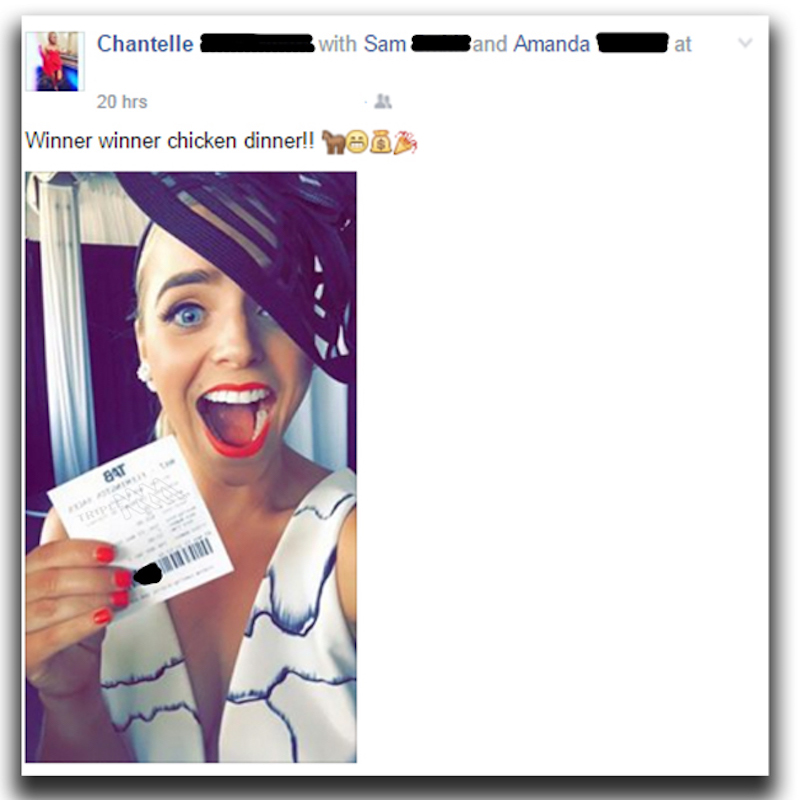 Дурочка же, что с неё взять? Некая девушка из Австралии по имени Шантель на скачках в Мельбурне поставила 101 к 1 на какую-то лошадку и неожиданно для себя выиграла аж 825 австралийских долларов.