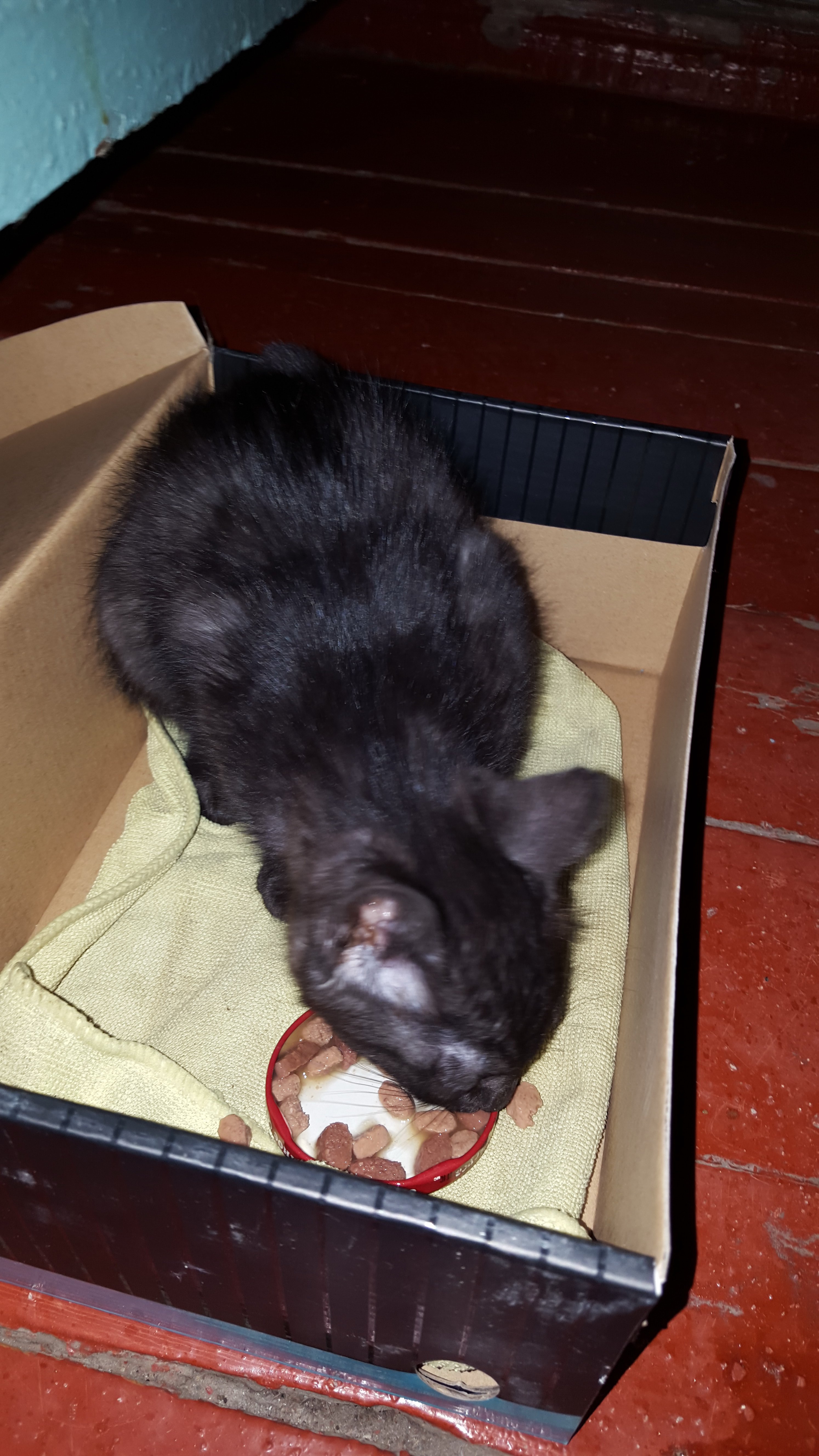 Какие-то не очень добрые люди подбросили котенка в подъезд. На вид - ухоженный, не бродячий. Пищал на весь подъезд. Посадила в коробочку и накормила, теперь тихонько спит. У котенка очень необычный окрас, сверху шерстка черная, а подшерсток - белый. Может кто возьмет такую лапу домой? Доставлю в любую точку города.