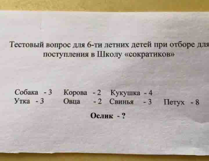 А ты "сократик"? 24/03/2016 22:33 Приличный шестилетний "сократик" решит такую задачку менее чем за минуту. А какой результат получится у тебя? Главная / Статьи +5 Admin 21 2 249