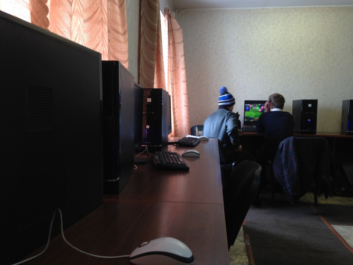 В субботу днём из 15 компьютеров были заняты пять — школьники играли партию в DotA 2, одну из самых популярных онлайновых игр современности. Они рассказали, что у каждого из них есть возможность «гонять катки», не выходя из квартиры: у всех дома компьютер, интернет и аккаунт в игровом сервисе Steam.