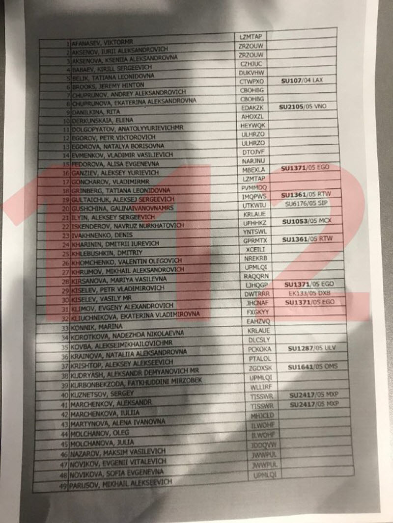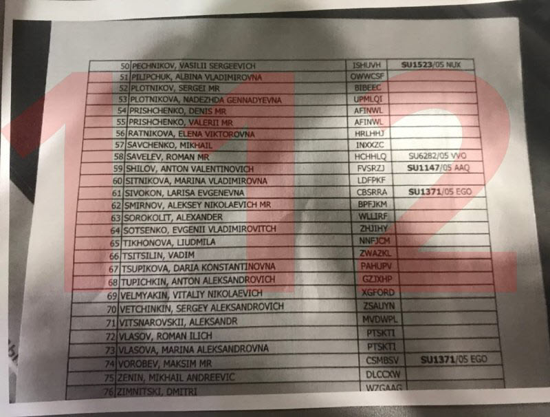 23:05 Telegram канал “112” опубликовал полный список пассажиров рейса SU1492 Москва – Мурманск.
