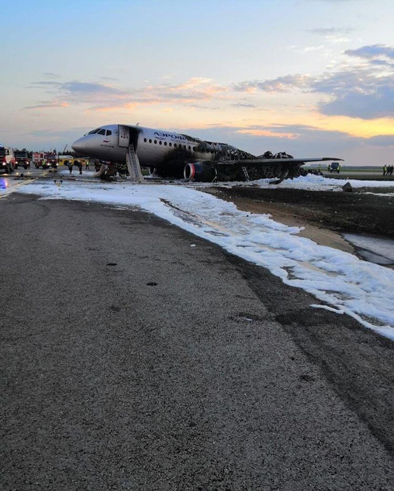 Также очевидцы опубликовали видео эвакуации пассажиров из горящего самолета. Многие заметили, что некоторые пассажиры бегут с чемоданами, несмотря на инструкции бортпроводников не доставать ручную кладь.