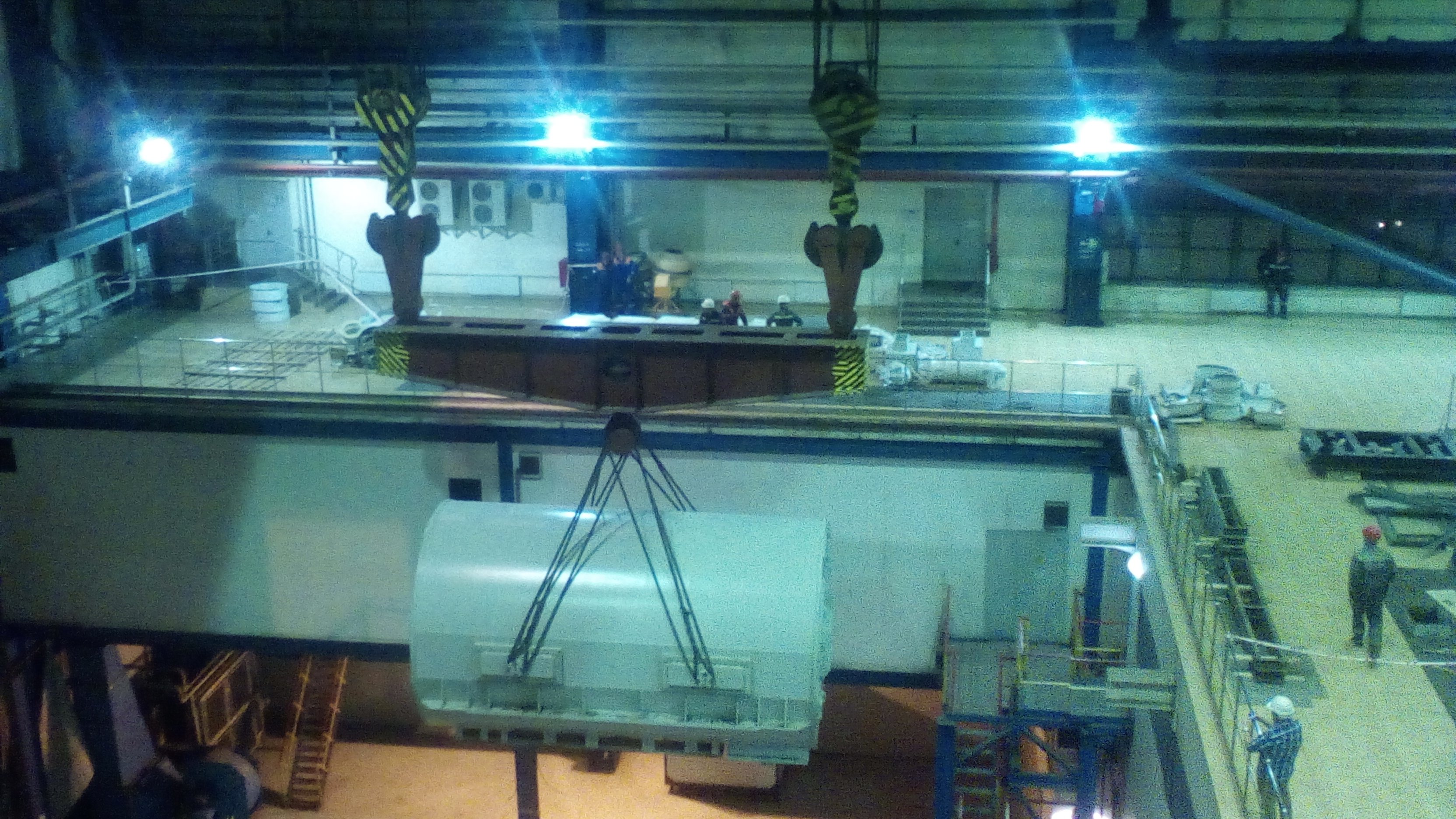 В 2018 году была замена генератора. Подъем осуществляли двумя кранами, так как вес статора был 190 тонн, а грузоподъемность одного крана 100 тонн.