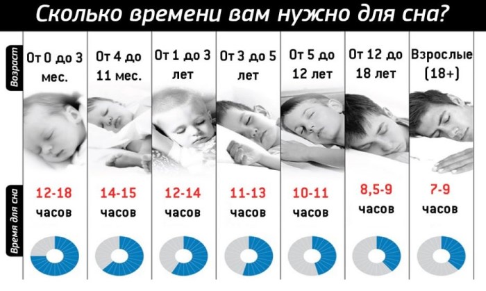 Всем известно, что полноценным сном считается 8-9-часовой отдых. Однако данный параметр не является универсальным для всех возрастов. Согласно исследованиям, больше всего времени во сне должны проводить малыши и подростки. Средний показатель для людей от 18 лет составляет 7-9 часов.