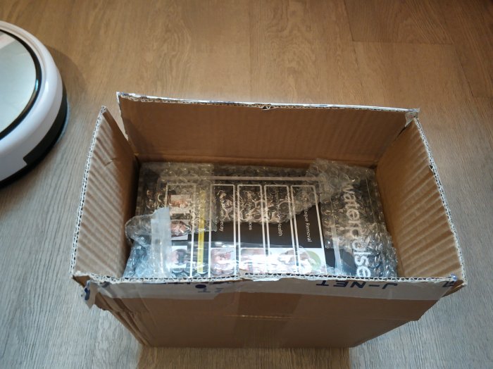 К упаковке претензий нет абсолютно никаких. Сверху стандартная картонная коробка, внутри, в пурчатой пленке уже "фирмовая". Конечно от "футбола" коробкой Почтой РФ наверное бы не спасло, но в стандартных условиях транспортировки, более чем.