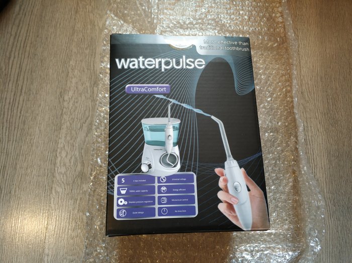 Уже распакованная сама коробка с ирригатором. По весу посылка вышла 1 кг. 70 гр.