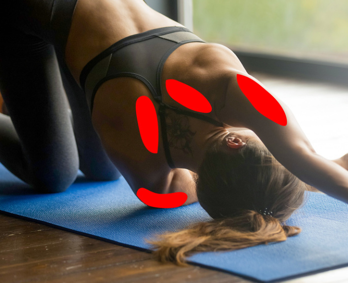 Перед тем, как выполнить позу нитки в иголке, вам нужно встать в так называемую позу стола. Это поза, когда вы стоите на полу на коленях и прямых руках, как четвероногое, но самое главное - чтобы колени были четко под тазовыми костями, а ладони - четко под плечами. Теперь начинаем скручивание. Левая ладонь отрывается от пола и начинает максимально скользить вправо, затылок опускается на пол. Левая рука лежит на полу ладошкой вверх. Затем все повторяем всё для правой руки. Это очень эффективное упражнение не только для лопаток, но и для всей длины позвоночника. В этой позе можно отдохнуть, отключиться от рассеянных тревожных мыслей, легко расслабиться. Если удерживать скрутку в каждую сторону по несколько минут, то может получиться даже вздремнуть на пару секунд. А если это выйдет, то вы ощутите, что невероятно отдохнули, словно перезагурзились.