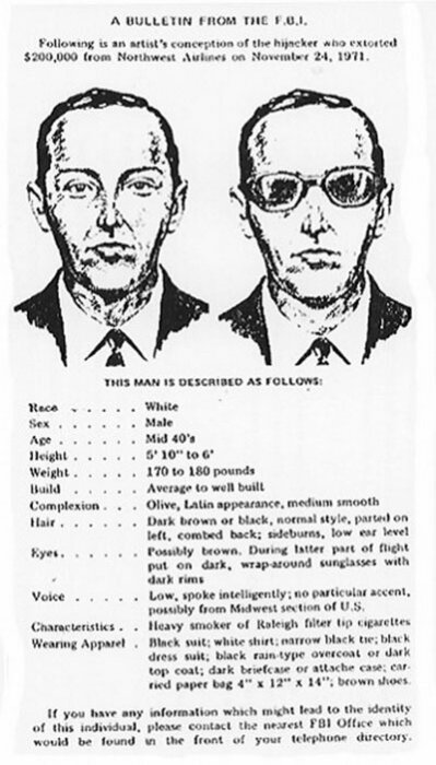 Одному человеку удалось все же совершить идеальный угон пассажирского лайнера. Он сумел не только получить затребованные 200 тысяч долларов, но и незаметно покинуть самолет. Искали его 30 лет, но безуспешно. И вот сегодня пришла новость о том, что дело закрыто, но не в связи с поимкой преступника.