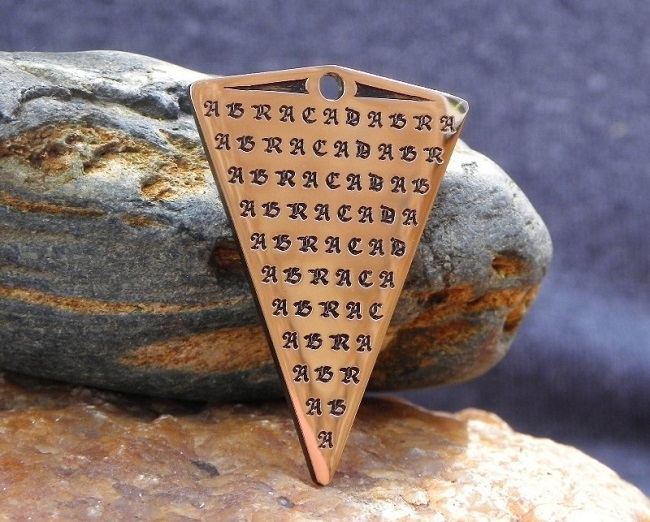 Считается, что впервые это слово применял личный медик императора Рима Септимия Севера Симмоник. Он во втором веке нашей эры в своем трактате рекомендовал написать это слово на глиняной табличке 11 раз, каждый раз сокращая одну букву сзади, создавая таким образом равнобедренный треугольник.