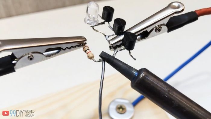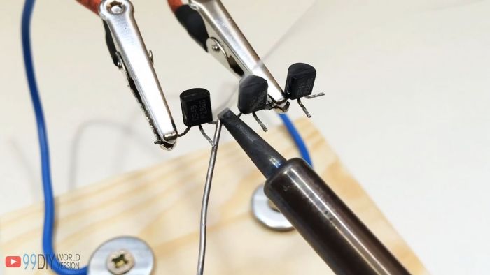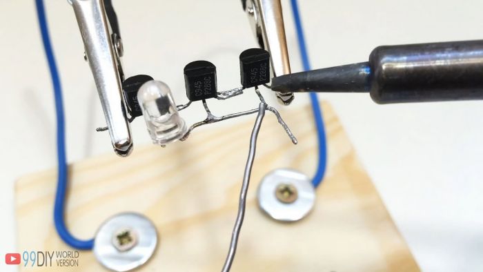 Собираем все по схеме. Сначала припаиваем транзисторы друг к другу.