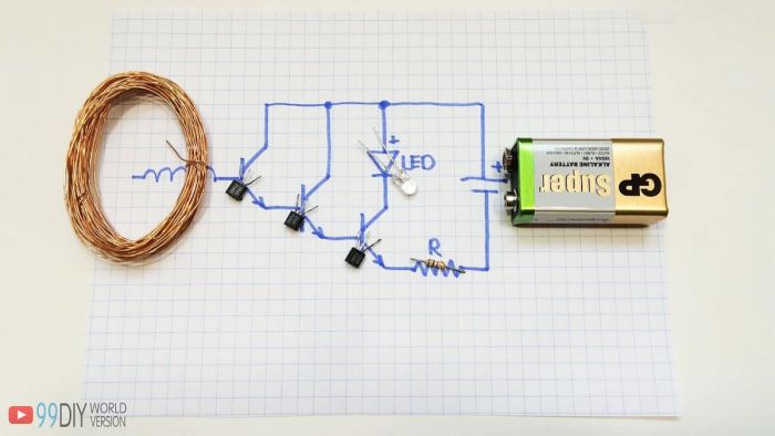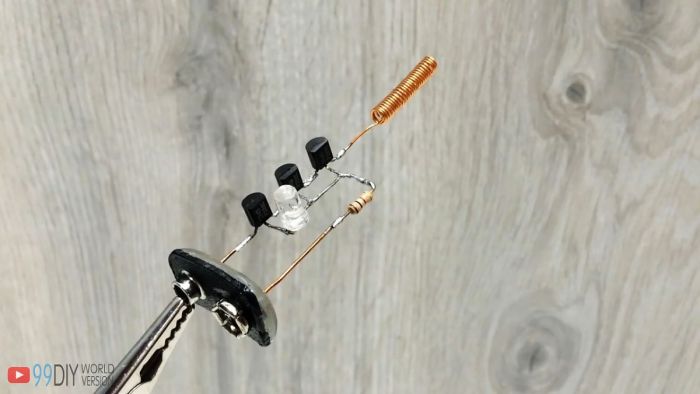 Эта конструкция из 5 деталей тем и хороша, что для нее не нужна плата - все собирается навесным монтажом.