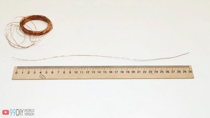 Первым делом изготовим поисковую антенны. Отрезаем кусок проволоки длиной примерно 30 см.