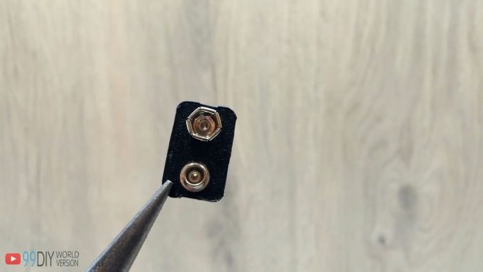 Чтобы его включить, необходимо надеть колодку на батарейку.