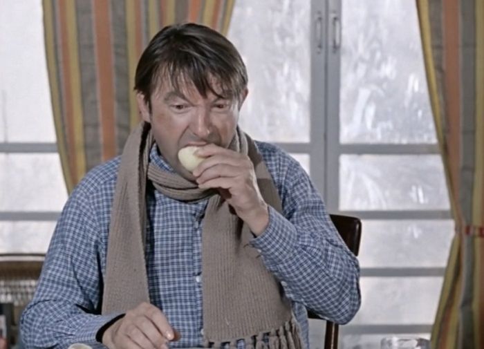 А в фильме на столе – горячая вареная картошка. Видимо, «джентльмены удачи» устали от холодной сырой пищи морозной зимой, и попросту наплевали на запрет Доцента. Или он сам ослабил ограничения.