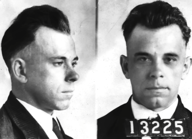 В начале 1934 года легендарный гангстер оказался за решёткой. Он уже был известен за свои ограбления и числился в ФБР как «враг общества номер один». Власти хвастались, что из тюрьмы, где сидел Джон, невозможно сбежать. Однако 3 марта гангстер доказал обратное. Вооружившись лишь бутафорским пистолетом, вырезанным из дерева, и почернением из обувного крема, преступник приставил «пистолет» к спине, стоявшего в коридоре, охранника. Поверив угрозе, смотритель подчинился и выпустил гангстера. Далее Джон взял своего друга и на машине шерифа умчались прочь.