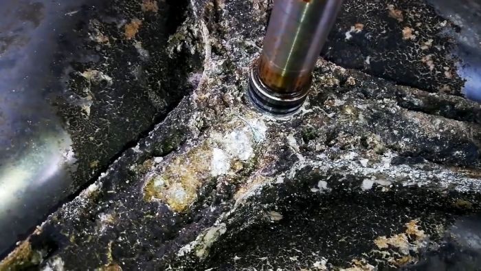 Третья стадия на практике не встречается, до такого состояния агрегаты не эксплуатируются. Для наглядности был проделан эксперимент – поверхность силумина поливалась раствором лимонной кислоты. Как следствие – сплав превратился в труху и полностью потерял свои несущие свойства.