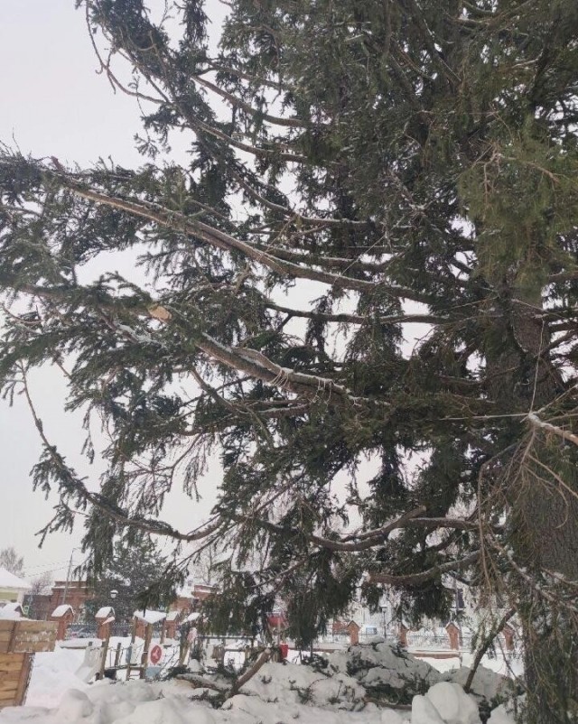 🪵 Решение нашли быстро: рабочие просто нарастили дерево ветками от других елей, аккуратно замаскировав проплешины. Получился такой себе новогодний «франкенштейн».