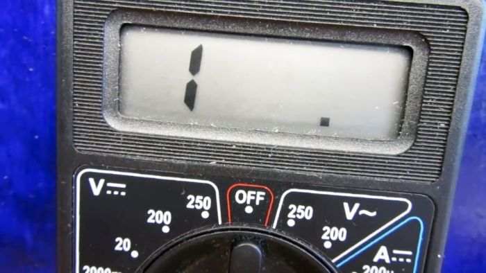 Если мультиметр показывает «1» ̶̶ замыкания на корпус нет. Если показывает какие-либо значения, или «0» и издает звуковой сигнал, то изоляция пробита