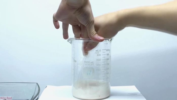 На данном этапе надо дать раствору настояться около часа, чтобы крахмал осел на дно сосуда.