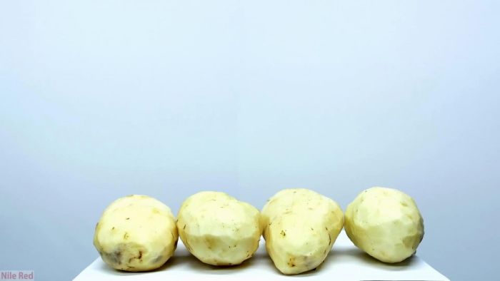 Итак, для проведения эксперимента нам понадобится четыре крупные картофелины, которые необходимо очистить.