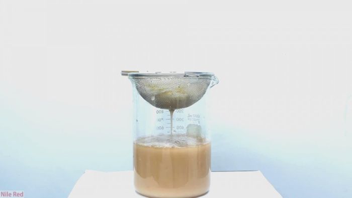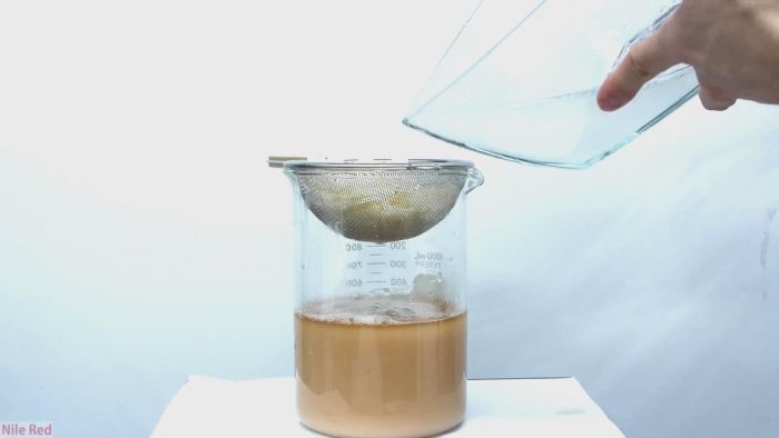 Оставшийся в сосуде раствор фильтруем через сито и промываем небольшим количеством воды.