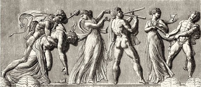 Триумфальное шествие Вакха, Древняя Греция. Гравюра XIX века
