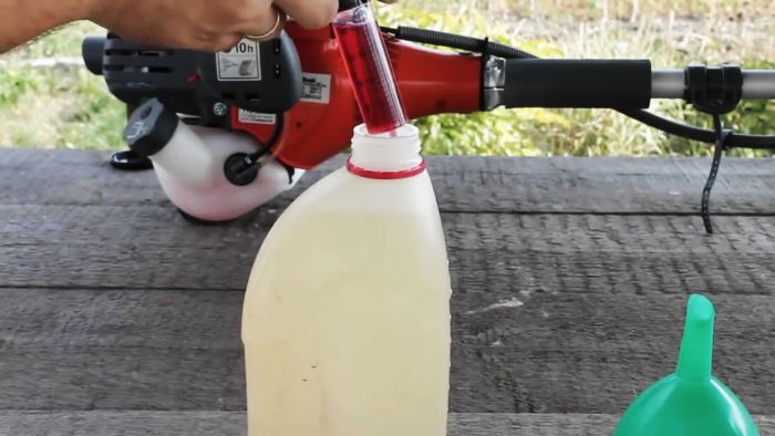 Многие люди опасаются покупать моторизованный инструмент, приводом которого служит двухтактный бензиновый двигатель. Их пугает постоянная перспектива смешивать бензин с маслом. Они предполагают, что это довольно проблематичная операция, хотя ничего такого в этой процедуре нет. Сейчас мы посмотрим, как это делается.