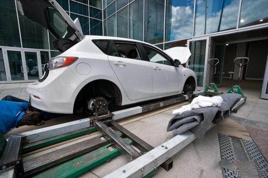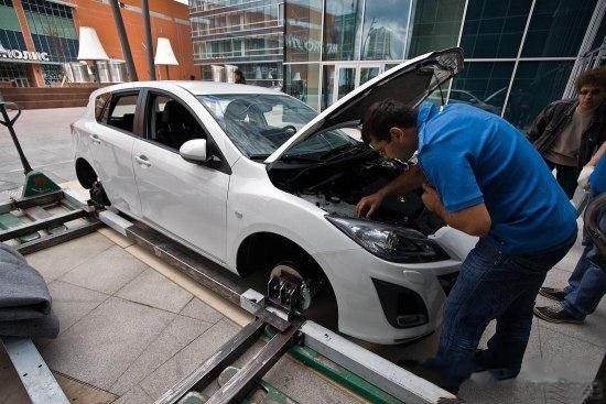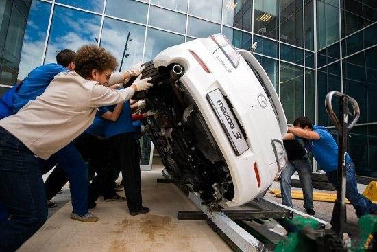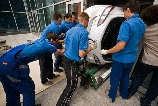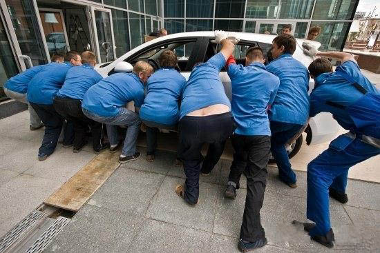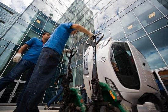 Как с помощью нехитрых приспособлений, грубой физической силы и небольшого набора местных идиоматических выражений команда техников затолкала новую "трешку" внутрь демонстрационного зала на Ленинградском проспекте. Никогда бы не подумал, что это так сложно сделать.