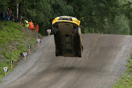 Русский пилот Евгений Новиков вошел в историю этапа чемпионата мира по ралли Neste Rally Finland одним из самых зрелищных прыжков