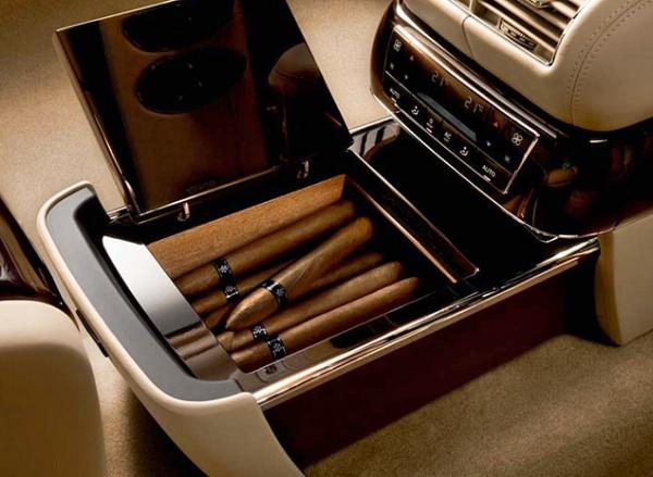 Помимо индивидуального блока управления мультимедийной системой и климатической установкой, специалисты Maybach оснастили задний подлокотник холодильником. Он был оборудован собственным компрессором и имел объем 9,3 литра. Кроме того, для пассажиров заднего дивана был предусмотрен ящик для хранения сигар (хьюмидор), в котором постоянно поддерживалась необходимая температура и влажность.