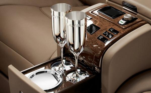 Специально для лимузинов Maybach из серебра 925 пробы изготавливались серебряные фужеры для шампанского. Их выпускала компания Robbe & Berking.