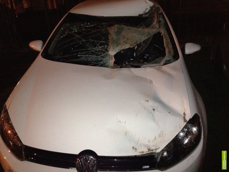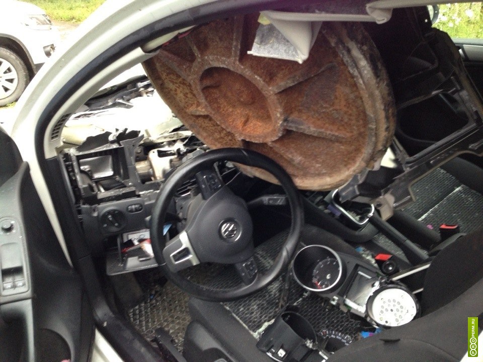В Перми в салон автомобиля Volkswagen Golf на ходу влетел канализационный чугунный люк.