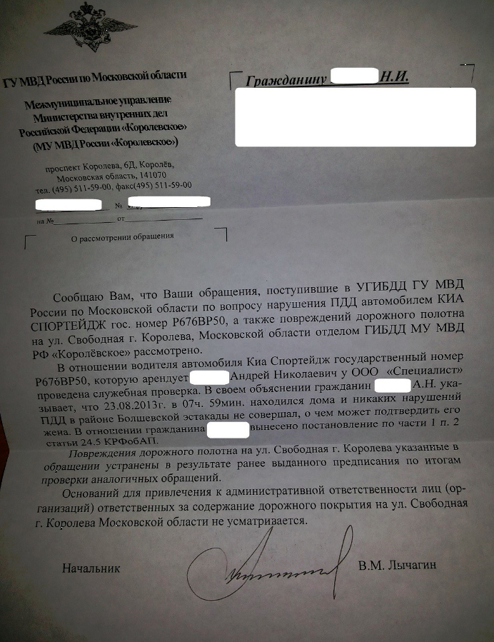 23.08.2013г. в 7 часов 59 минут 40 секунд я двигался с Болшевской эстакады в сторону улицы Комсомольская города Королёва и стал свидетелем нарушения ПДД РФ автомобилем КИА СПОРТЕЙДЖ гос. номер Р676ВР50, а именно п. 8.1 ПДД РФ , ответственность за которую предусмотрена по ст. 12.14.1 КоАП. Через 10 секунд, и именно в 7 часов 59 минут 50 секунд я стал свидетелем повторного нарушения ПДД РФ автомобилем КИА СПОРТЕЙДЖ гос. номер Р676ВР50, а именно п. 8.1 ПДД РФ , ответственность за которую предусмотрена по ст. 12.14.1 КоАП.