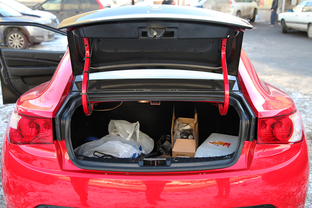 Сам багажник не меленький, объём составляет 392 литра. Но вот проём точно маловат. Вновь плата за внешность, хотя при позиционировании автомобиля для молодых людей, проблем возникнуть не должно: пакеты и спортивные сумки влезут идеально, да и качество отделки самого багажника вполне достойное.