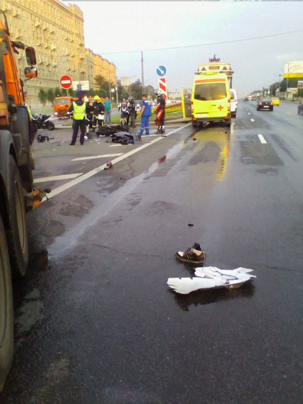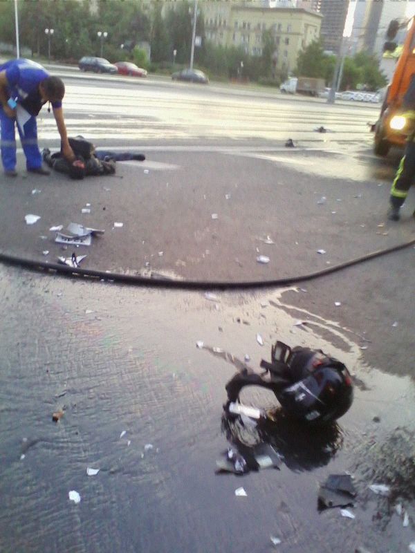 Ранним утром в районе 5 часов на Кутузовском проспекте произошло серьезное ДТП с участием мотоциклиста. Столкновение мотоцикла "Kawasaki Ninja" и поливомоечный машины произошло при движении в сторону центра в левой полосе в районе дома № 45. В результате сильнейшего удара на скорости около 200 км/ч мотоцикл загорелся. 19-ти летний пилот Владимир Марченко погиб мгновенно.