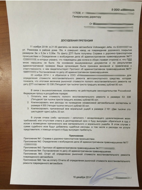 Из-за плохих дорог в нашей стране происходят многочисленные ДТП, участники которых редко обращаются за выплатами к дорожным службам. Однако случай, который описан в этом посте, является исключением. В результате долгих разбирательств и всевозможных бюрократических сложностей, герой нашего рассказа все же добился справедливости и получил компенсацию материального ущерба.