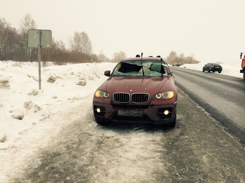 Водитель автомобиля КамАЗ, двигаясь из города Томска, перевозил строительный мусор. С его слов, кузов был укрыт пологом, который вероятно частично сорвало во время движения. Выпавший большой кусок листа ДСП попал в ветровое стекло встречного автомобиля BMW. Его водитель — мужчина, 32 лет, скончался на месте происшествия через несколько минут. В автомобиле он находился один.