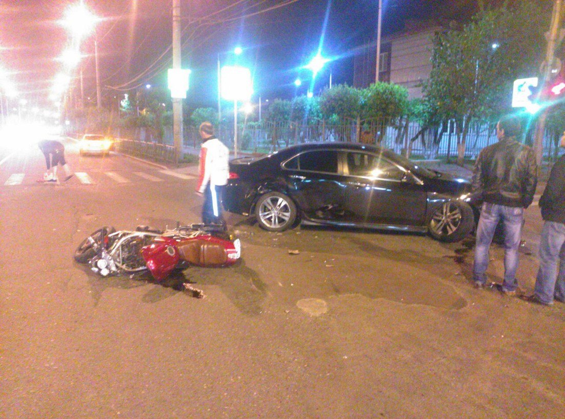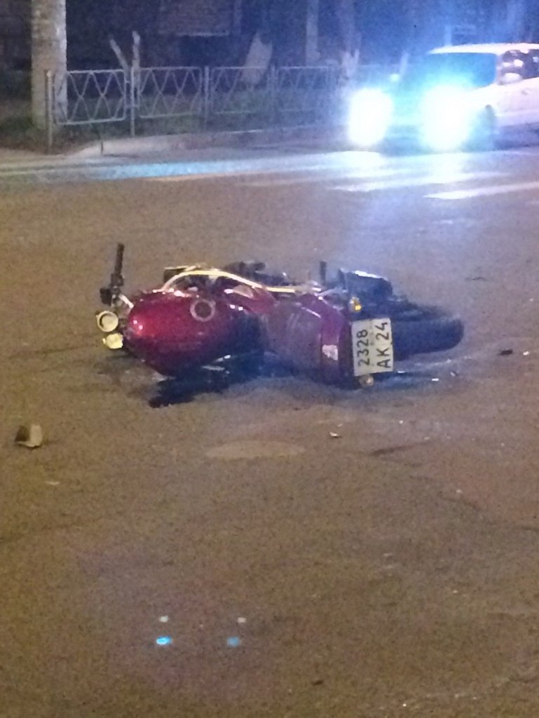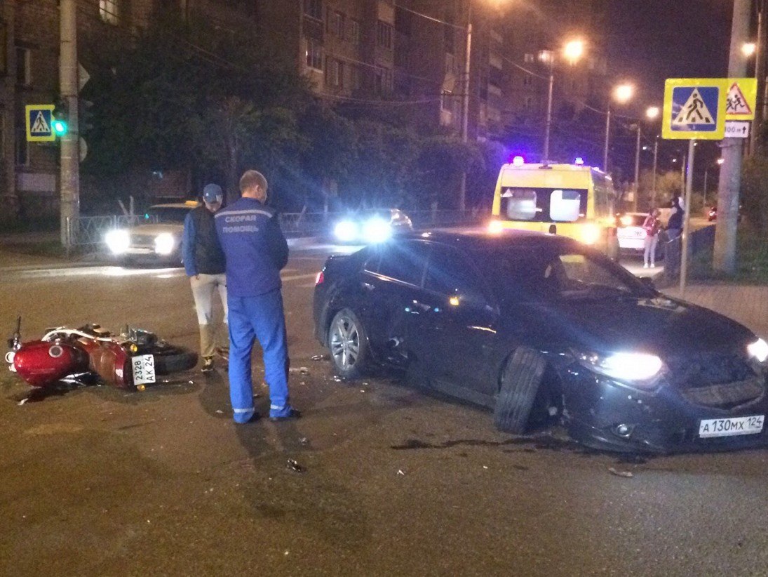 Около полуночи 28 мая в центре Красноярска произошло ДТП с участием иномарки и мотоцикла. На перекрестке улиц Марковского и Сурикова «Хонда Аккорд» начала поворачивать налево, не предоставив преимущества мотоциклу, который двигался прямо. В результате произошло столкновение.