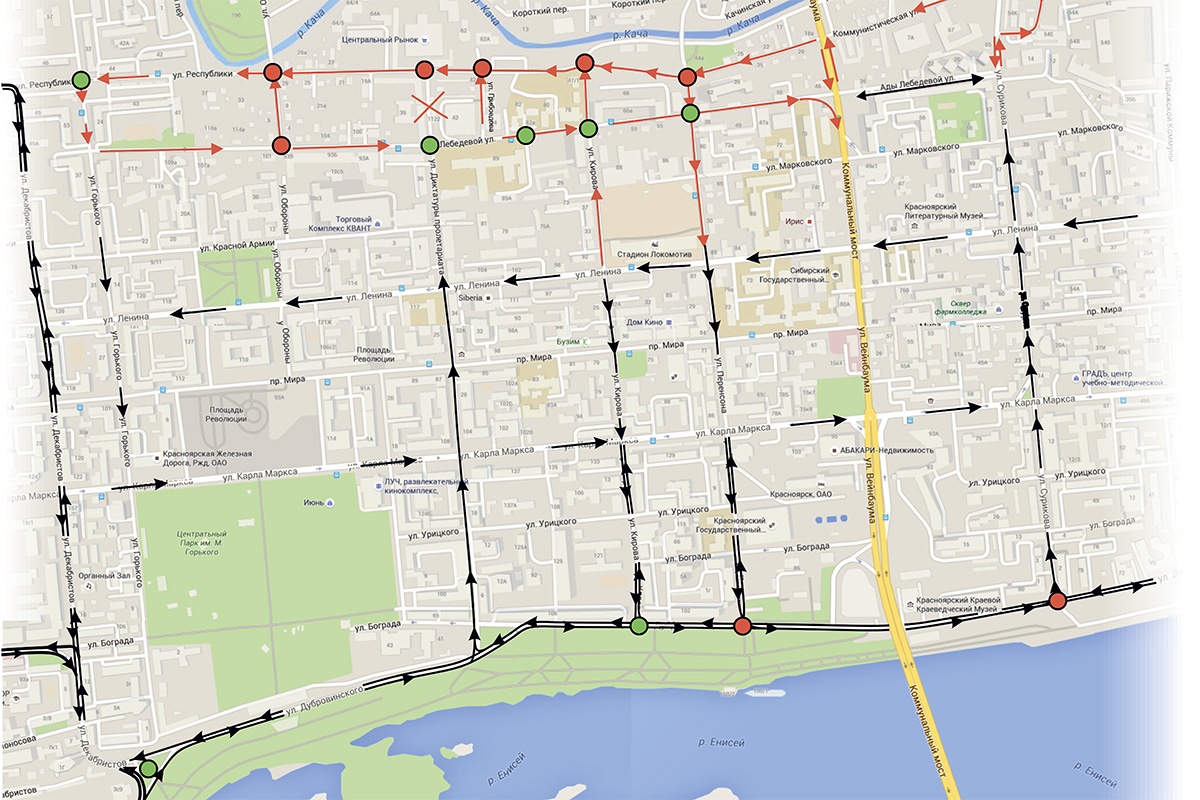 С 24.10.15 в центре Красноярска существенно изменится схема движения транспорта.