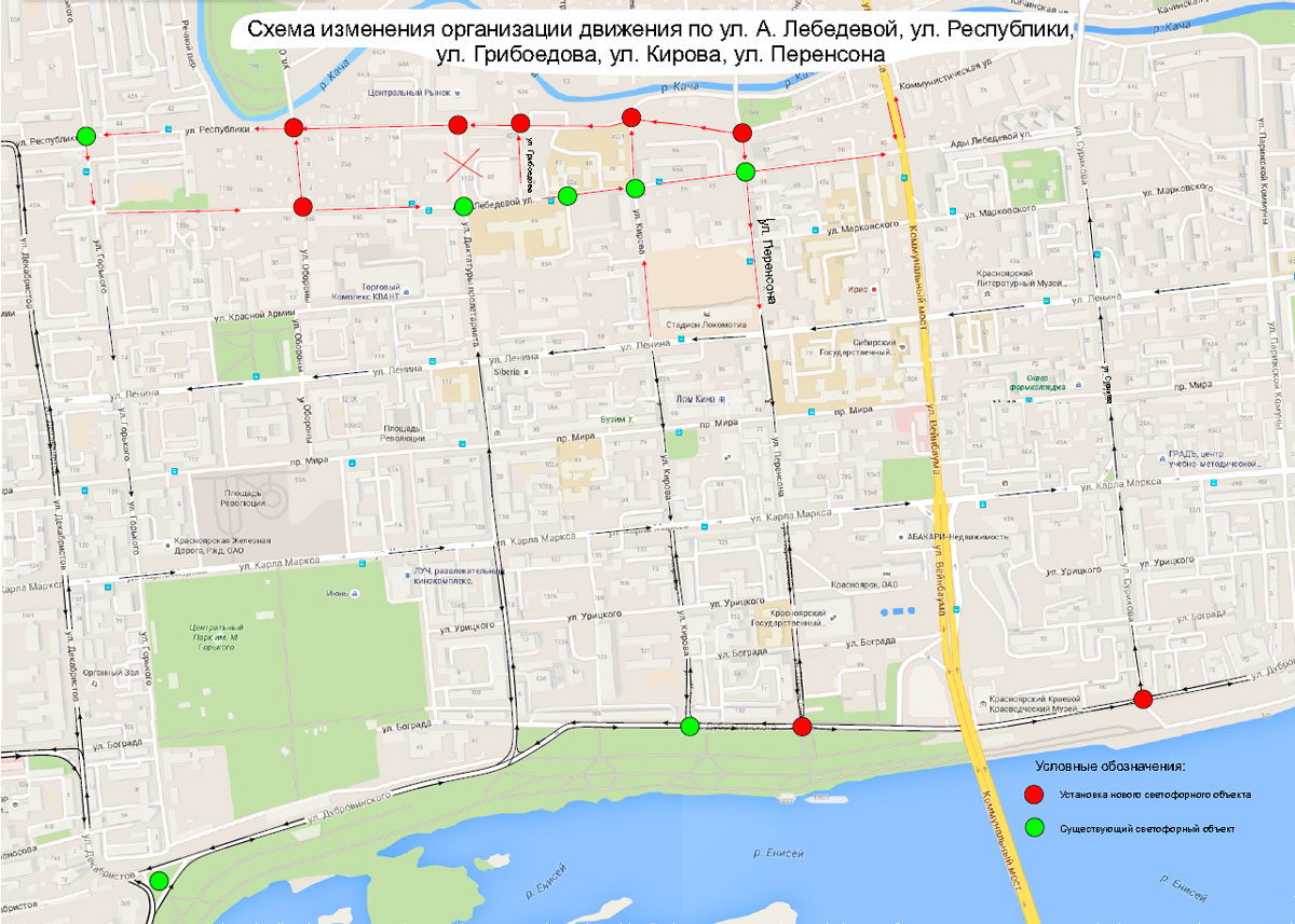 С субботы, 24 октября, односторонними стали сразу шесть участков в центре Красноярска
