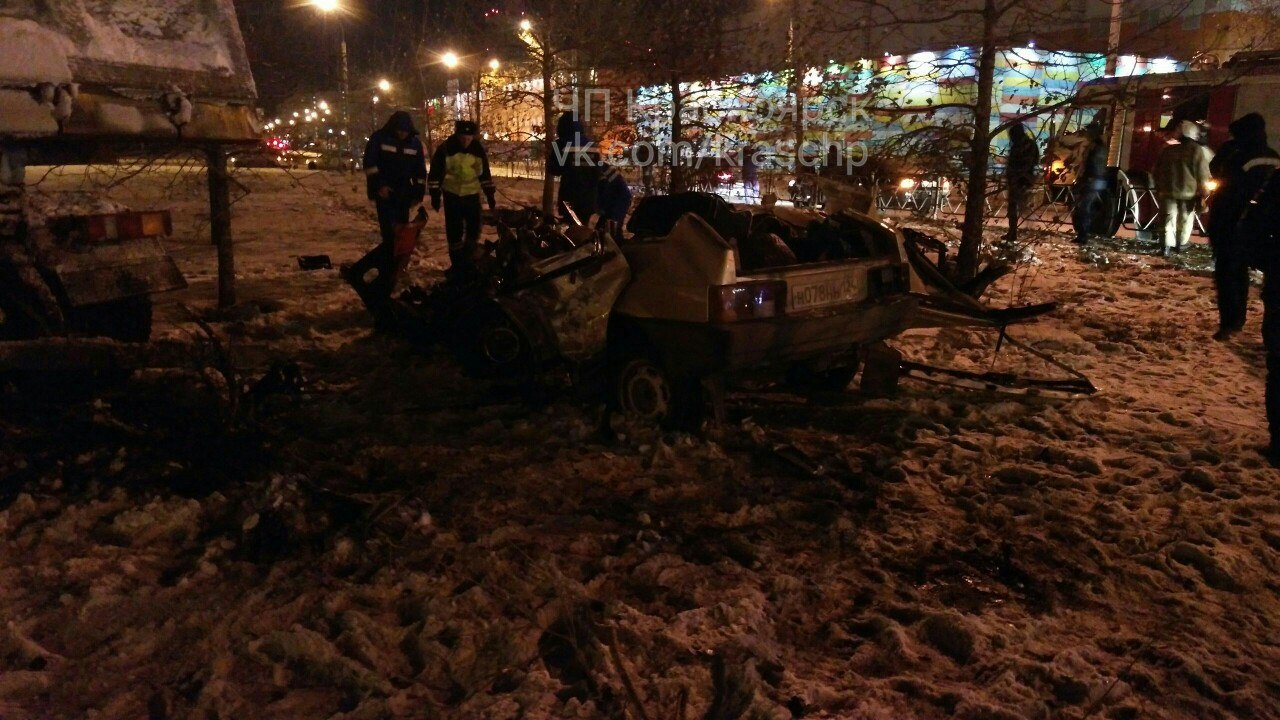 ДТП произошло в третьем часу ночи. Перекресток 9 Мая – Авиаторов не поделили «девятка» и грузовик «МАЗ».