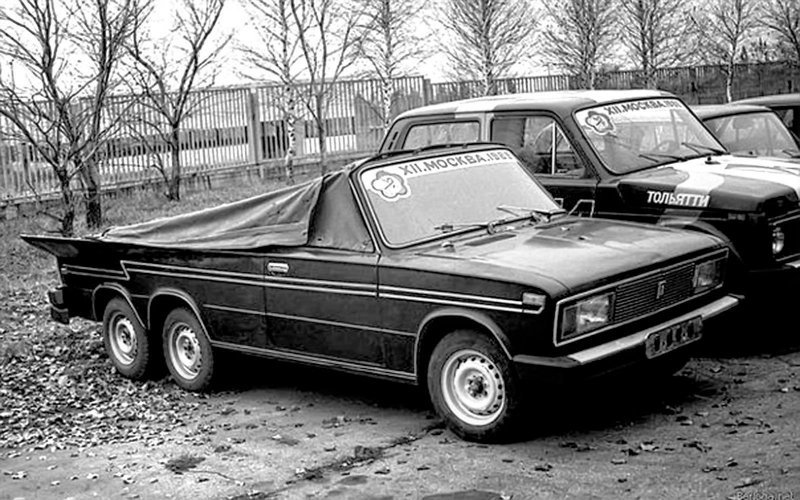 Еще один трехосный легковой автомобиль, причем кабриолет. Такие машины на основе ВАЗ-2103 сделали для парада московского Всемирного фестиваля молодежи в 1988 г.