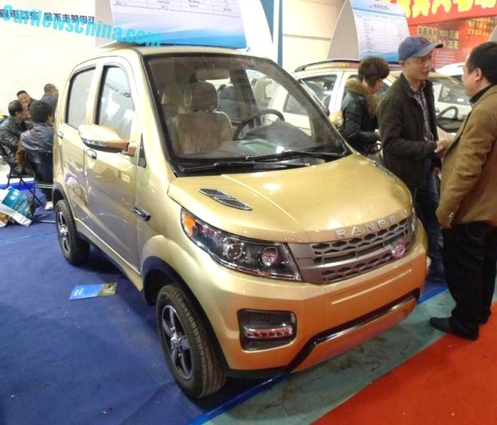Электромобиль, старательно стилизованный под Evoque, по необъяснимым причинам щеголяет колпачками колесных дисков со значком BMW.