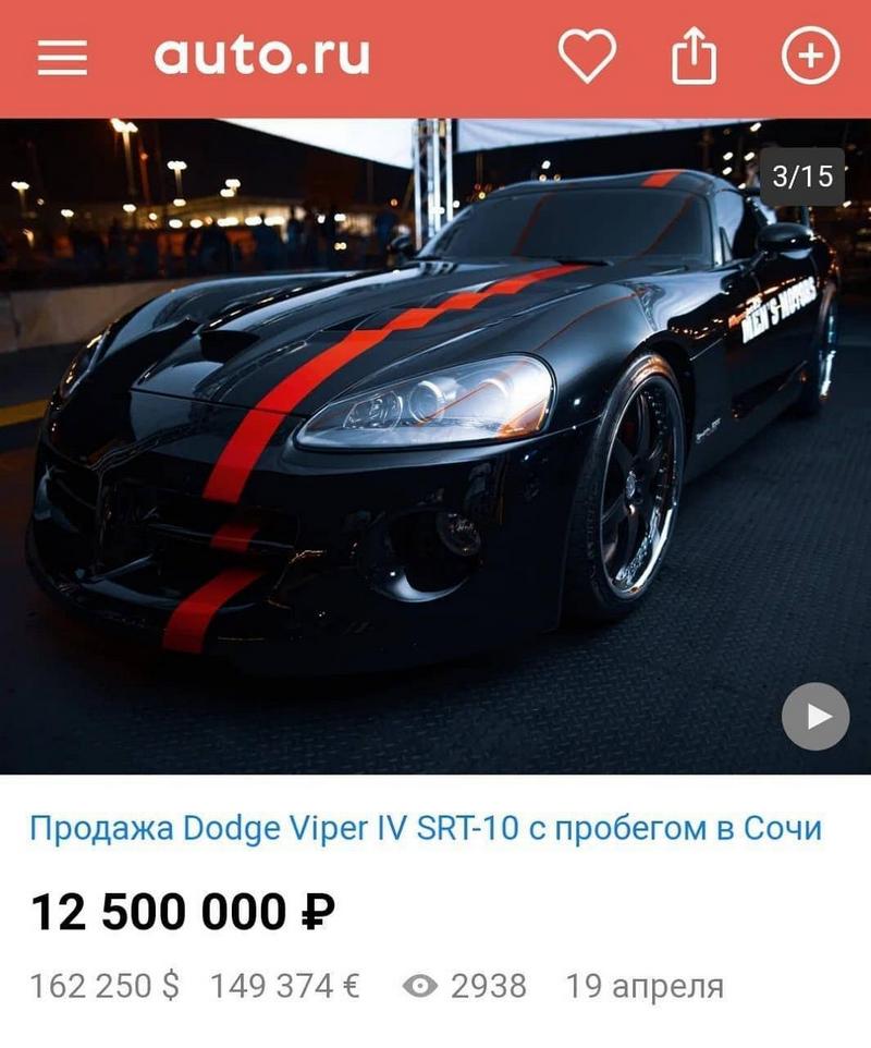 «Доджа Вайпер», который недавно продавался за 12,5 млн рублей, разбили в Сочи 27/04/2020 18:30 Водитель не удержал руль и намотался на дерево. Сейчас мужчина в больнице. Будем надеяться, он успел оформить КАСКО Главная / Статьи / Авто -3 Admin 3 789