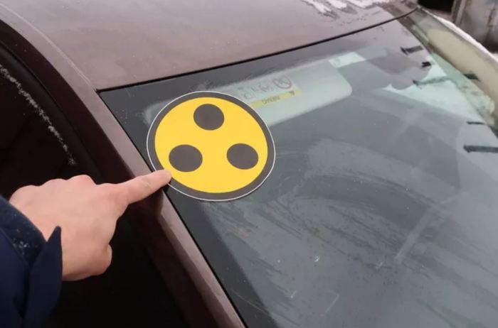 В наше время существует немало водителей, которые любят нацепить на стекло своего автомобиля разнообразные наклейки забавы ради. В огромном потоке декоративных элементов граждане очень часто забывают о том, что существуют еще и наклейки утилитарные, которые должны крепиться на стекло машины в обязательном порядке в соответствии с действующими правилами дорожного движения. Желтый круг с тремя черными точками – как раз этот случай.