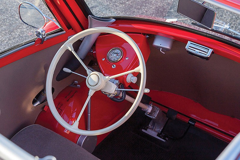Isetta, имеющая итальянские корни, в первую очередь отличалась скромными размерами и тем, что единственная дверь была расположена там, где у современных автомобилей находится капот: руль модели двигался вместе с дверью.