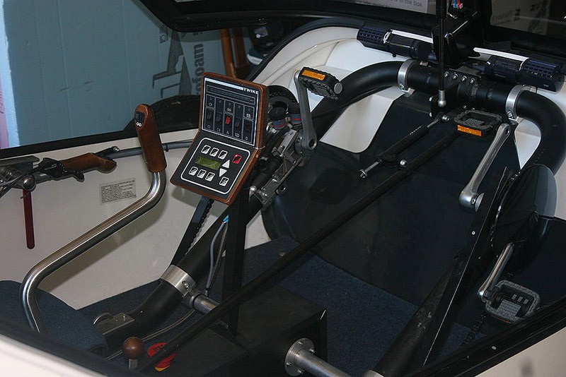 В салоне установлены педали, крутя которые можно заставить 246-килограммовую машину ехать.